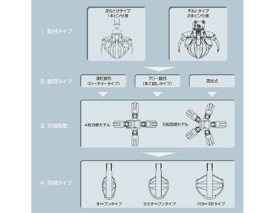 特に、支持が高いのは20年程前に生まれたオレンジグラップルです。オレンジグラップルは生まれてからずっと20年間に100以上のカスタマイズを繰り返してきました。この短期間に100回を超えるカスタマイズの多さはお客様の要望に真摯に応えてきた結果です。この間に性能もかなり向上してます。MARUJUNの商品はお客様の要望に応えながら常に進化し続けます。